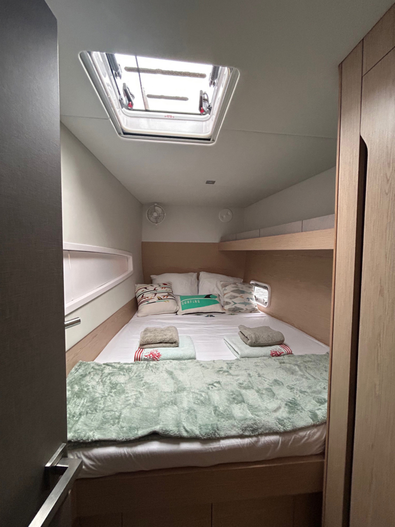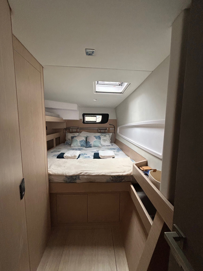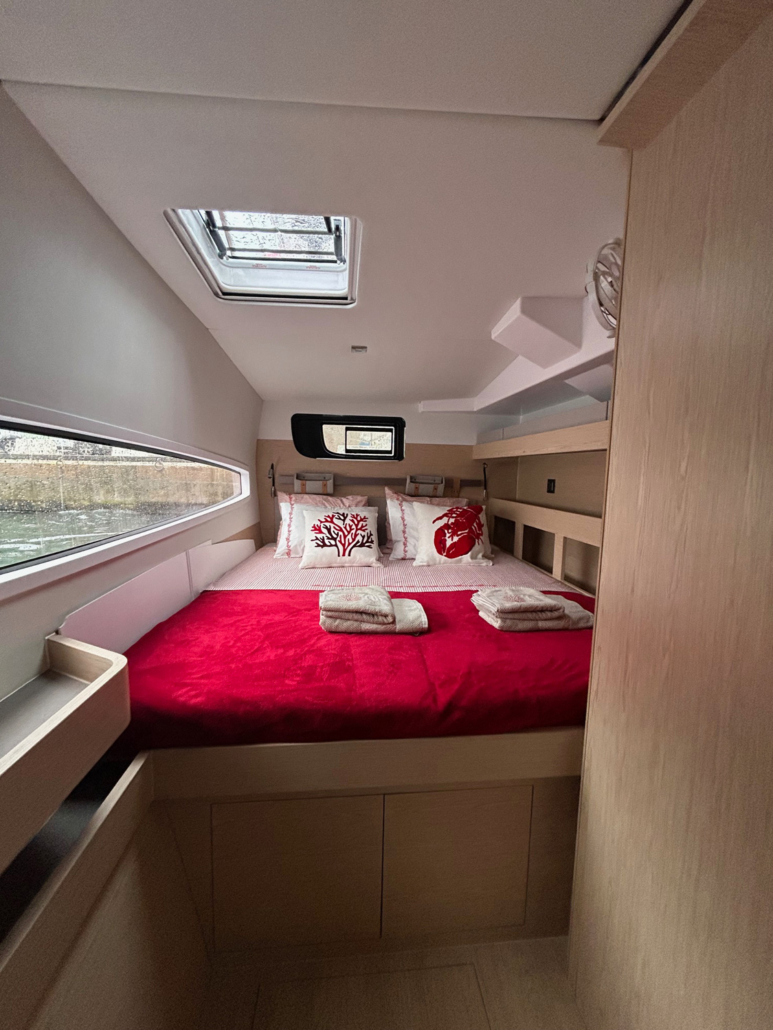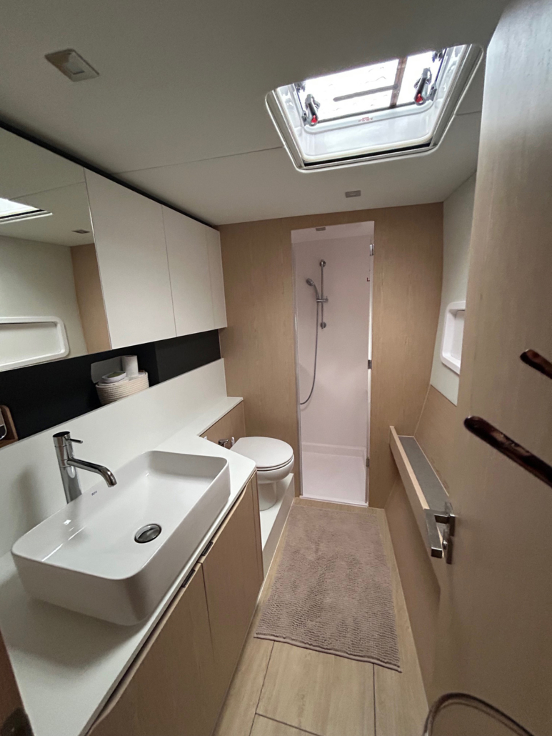 La performance d’un catamaran étant conditionnée en grande partie par son poids, il a fallu faire preuve d’ingéniosité pour réaliser la structure de ce nouveau modèle. Une technologie innovante mise au point par le chantier Gunboat (également membre du Groupe Grand Large Yachting), a permis de réduire le poids de la structure tout en conservant une résistance à toute épreuve. Ceci a permis d’augmenter les surfaces vitrées et les ouvertures dans le bateau. Ainsi, où que l’on soit positionné dans le carré ou le cockpit, les équipages bénéficient d’une visibilité accrue lors des navigations, un atout sécurisant.